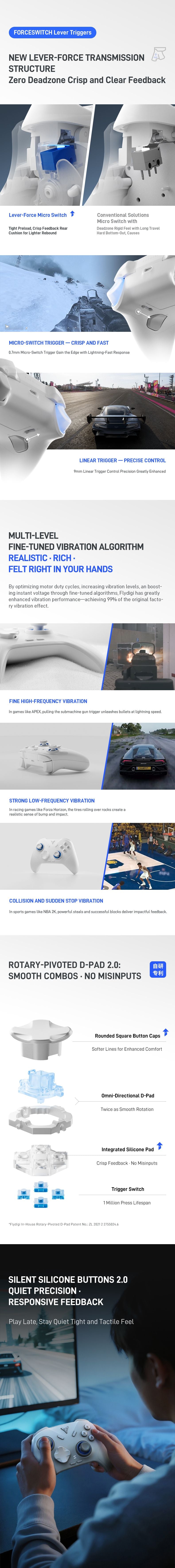 - Force-Switchable Vibration Triggers & Hybrid 8-Way D-Pad 2.0